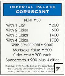 | A property card from the Star Wars Classic Edition Monopoly, credit sign inset for clarity. (9) |
