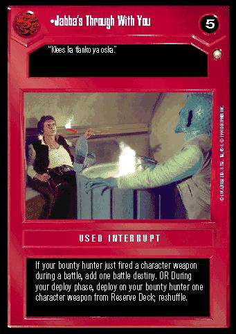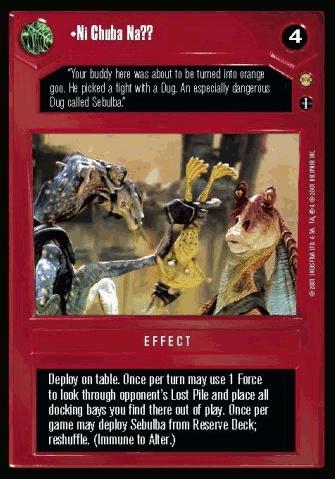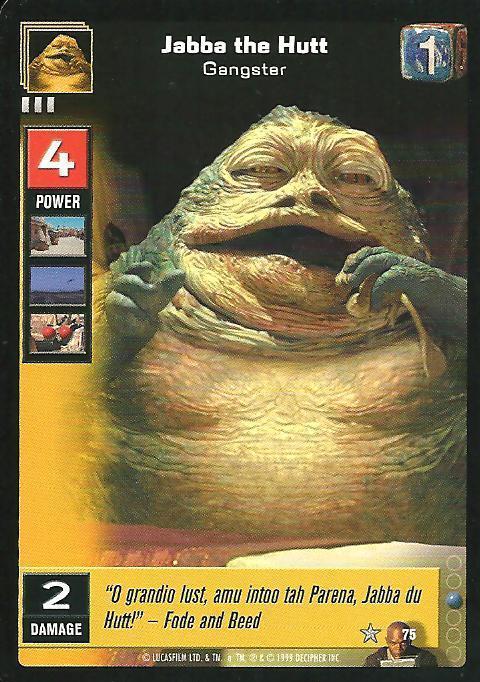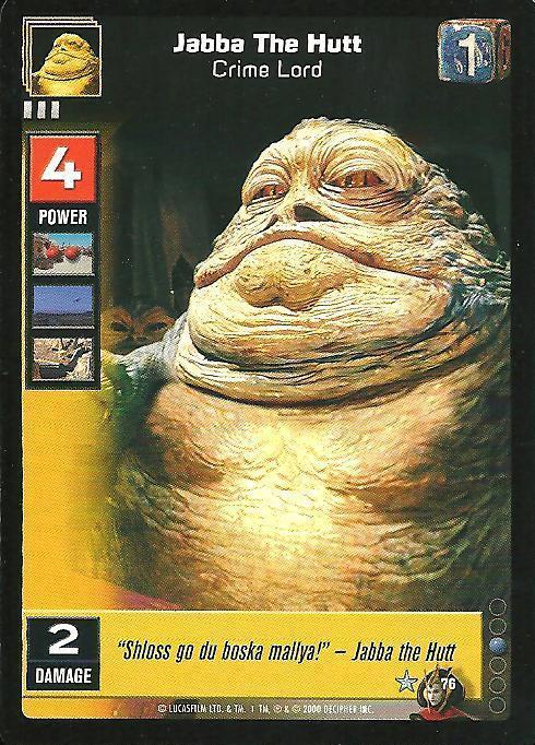 | Star Wars Customizable Card Game card featuring Huttese by Greedo. Phrase is different asit appears in film and from Ben Burtt's Guide. |