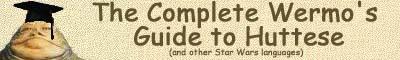 Legal note: Star Wars belongs to like George Lucas and stuff so it's like copyrighted by him or something. The Complete Wermo's Guide to Huttese and Other Star Wars Languages and Star Wars Living are my creations. Please acknowledge the Star Wars code of ethics by not copying and pasting large chunks of information from my site to your own. Please credit me and link to me if you do use information from my site. Thank you. |